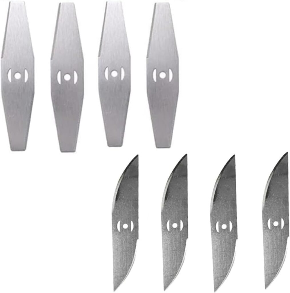 - Versatilidad de Corte: El set incluye diferentes tipos de cuchillas: de plástico para césped joven, prismáticas de metal para hierbas más viejas y gruesas, y circulares de acero inoxidable para ramas y arbustos. Esta variedad permite abordar diversas tareas de jardinería con una sola compra.